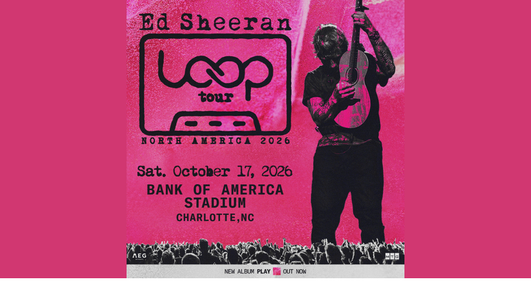 Don't miss Ed Sheeran! Bringing the LOOP Tour 2026 to Bank of America Stadium on October 17th, 2026!